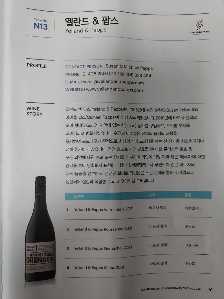 남호주 주정부에서 주최해서 남산에서 5월 18일날 진행된 '남호주 와인 시음회2022(South Australia Grand Wine Tasting'에서 13개의 미수입 와이너리의 와인들을 만났다.
