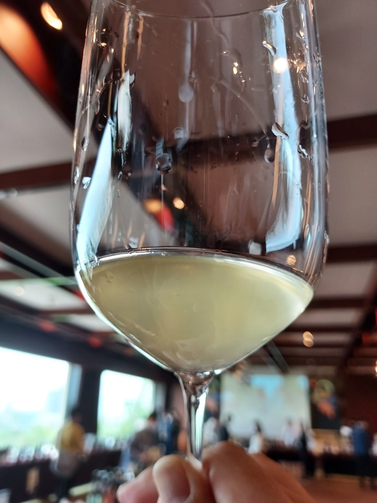 사진에 잘 담기지 않았지만 정말 탁하고 넌 필터링한 느낌의 화이트, 실제 입에서 질감도 그렇고 향도 매우 개성있고 뭔가 암튼 참 유니크한 느낌의 화이트. 스킨컨택을 좀 오래하면서 재미있는 와인을 만들려고 한 것 같은 내추럴 와인스타일의 화이트. 향과 질감은 재미있는데 맛에서는 또 큰 특징이 없는 그냥 영한 화이트, 레몬, 자몽 정도의 과실미, 미네랄리티는 거의 느껴지지 않고...